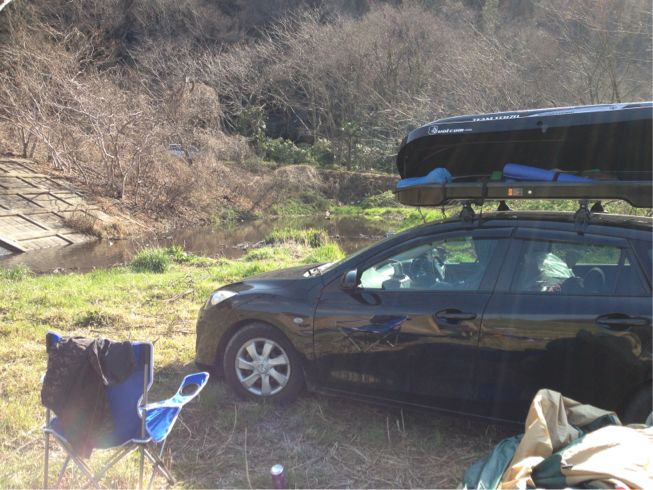 車も近くまで寄せられて、キャンプ場じゃない所…。
