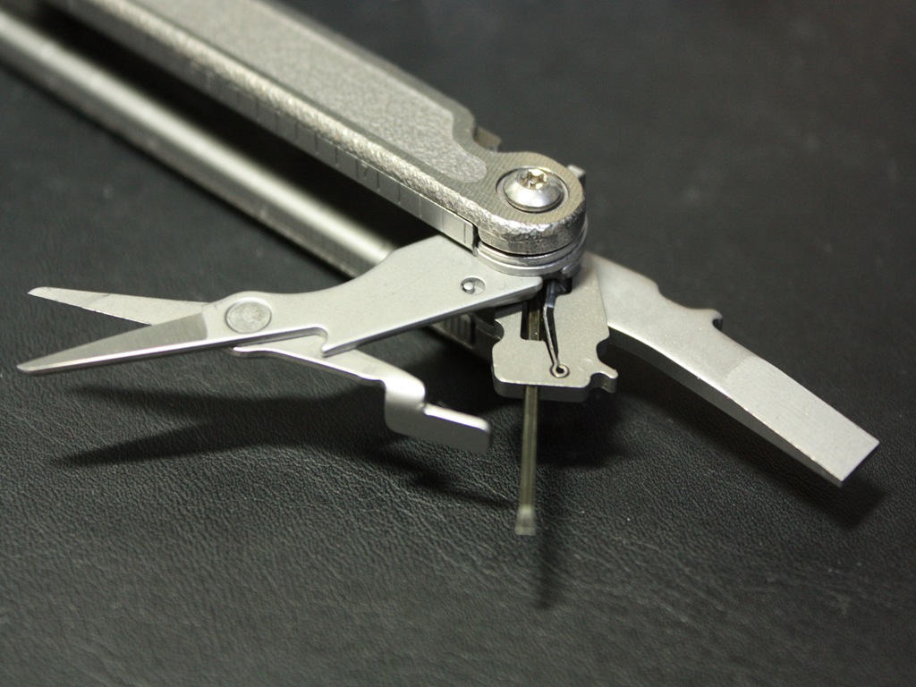 ドライバーと缶切り。ドライバーは替えがセットになっていて、様々な種類の頭に替えられます。それぞれにロック機能が付いており、使用時はぶれません。
