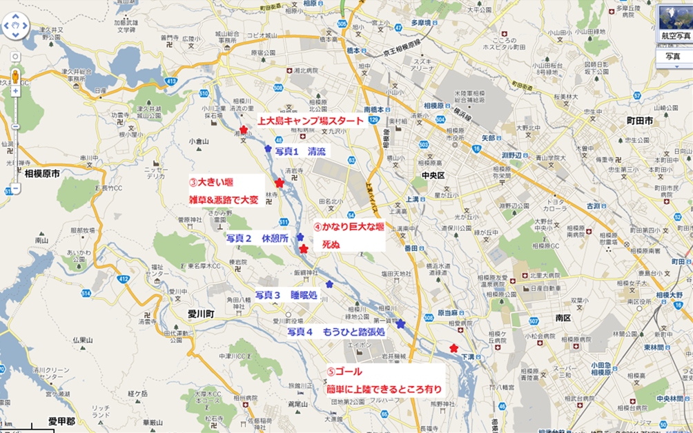 googleマップで検討に検討を重ね、ルートとしては上大島キャンプ場~下溝間にしました。