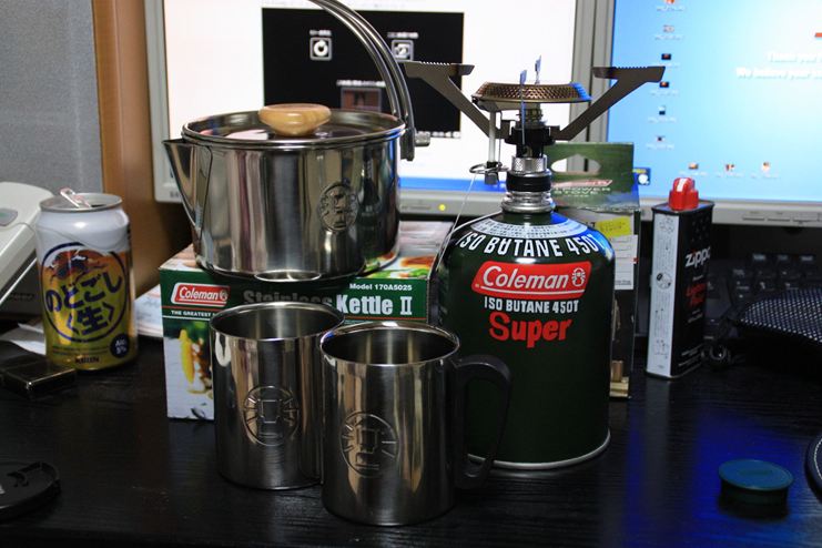 →ヤフオクのカセットコンロ仕様のシングルバーナー。コールマンツーバーナーも考えたが、重そうだし、机の上でなんか沸かしたかったので、小型のこいつに。先日の花見で実践済み。