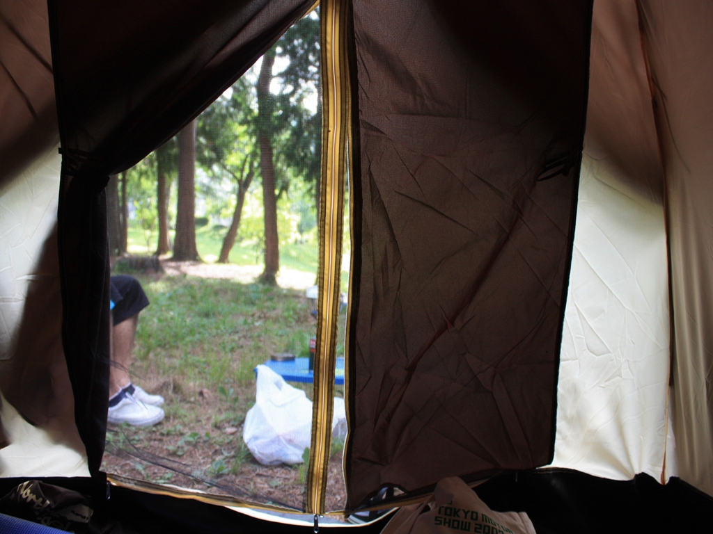 欠点としては、天井の大型ベンチレーションに似合わずフライシートの窓が小さい。空気が抜けなかった感があるかな。