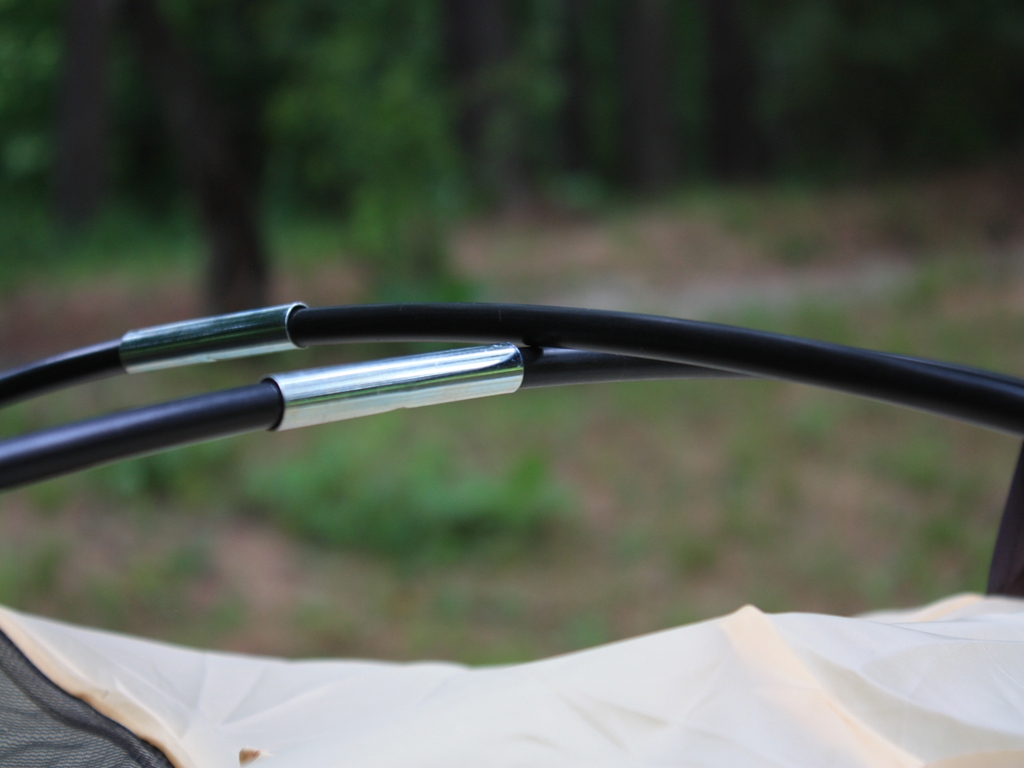 ちと細い所であるが、ツーリングテントの軽量化に役立っていると思う。
