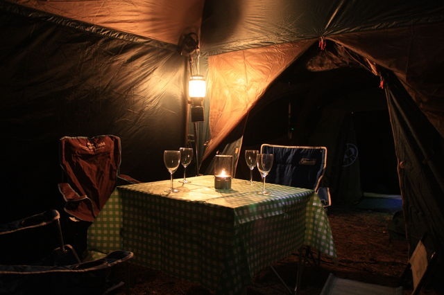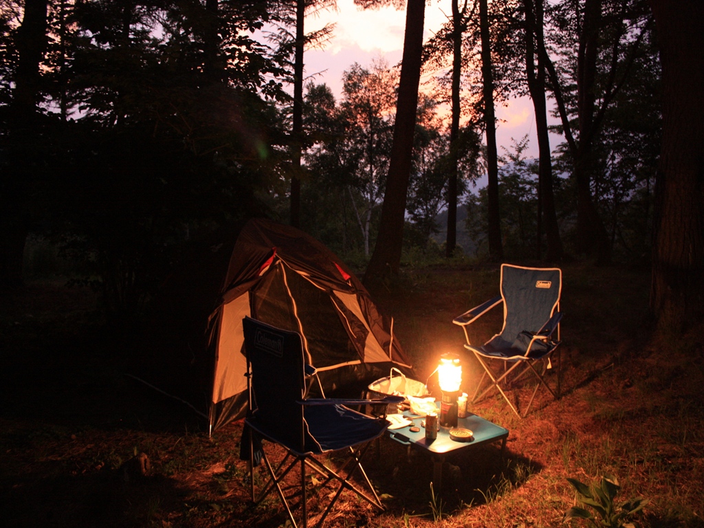 虫の音のBGMに夜空には満天の星。コーというランタン燃ゆる音の下、本を読む。