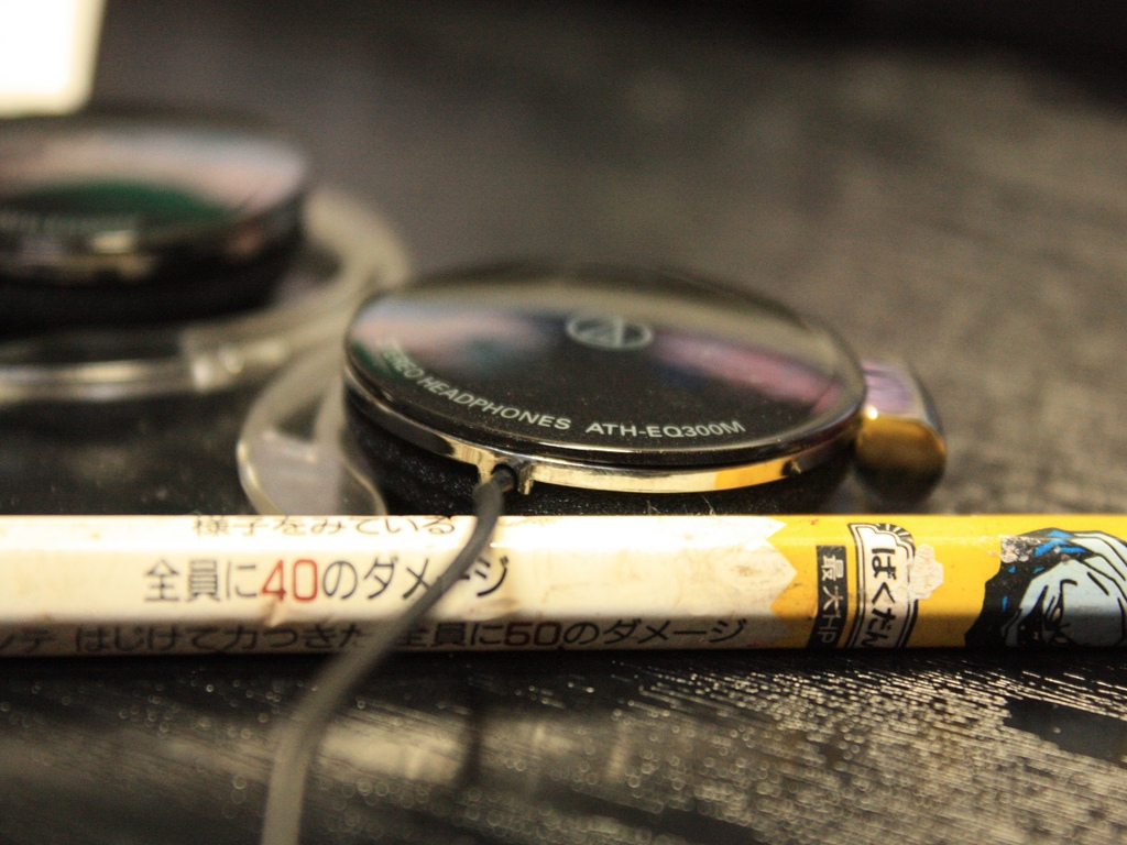 まず、使用ヘッドホンについて。オーディオテクニカ製の薄型耳掛けヘッドホン。