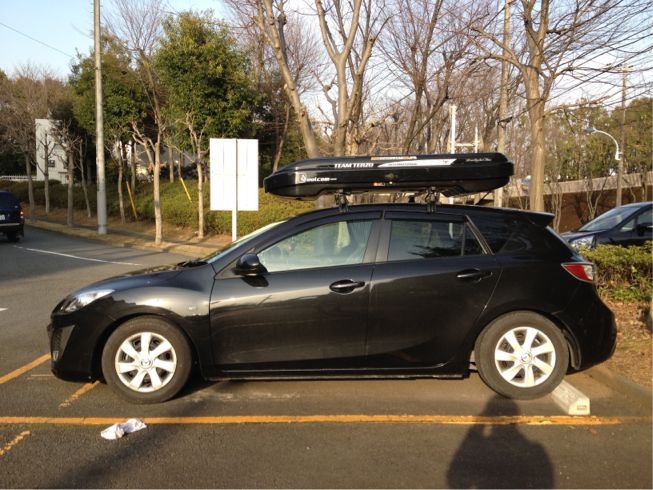 ちなみに、このボックスは、TERZOのローライダーフレックスルーフボックスEA336FBです。